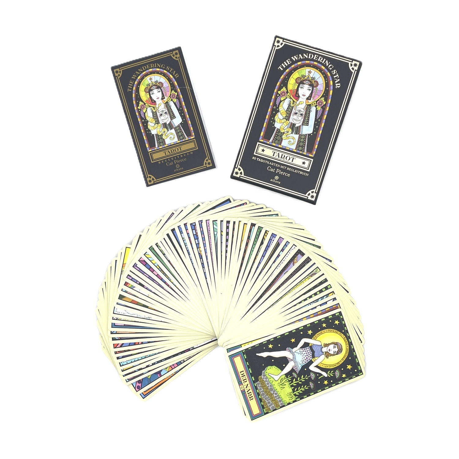 Diese Interpretaion des Tarot hat etwas ganz Eigenes. Zwei zusätzliche große Arkana Karten, eingebracht durch die Künstlerin Cat Pierce geben dem Kartendeck einen ganz eigenen Flare. Mit dem Thema des “Wandering Star”, des wandernden Sterns, hat es eine betonung auf menschliche Einzigartigkeit und darauf, wie alle ein ganz eigenes Leuchten besitzen. Mit den nunmehr 80 Karten dieses Decks, kann man sich selbst näher erforschen, Individualität zum glänzen bringen. Das Begleitbuch erklärt mit seinen 128 Seiten grundlegende Bedeutungen und gängige Legesysteme und unterstützt dabei intuitive Deutungen zu festigen. Sei es also für Anfänger im Tarot oder erfahrene Hexen, dieses Deck ist in jedem Fall eine Bereicherung.